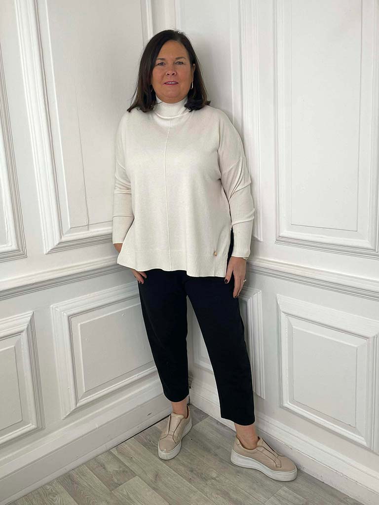 High Neck Ribbed Back Knit - Parchment